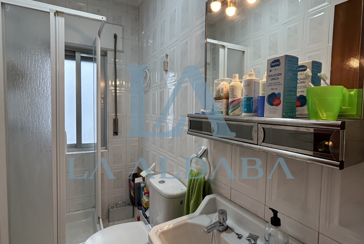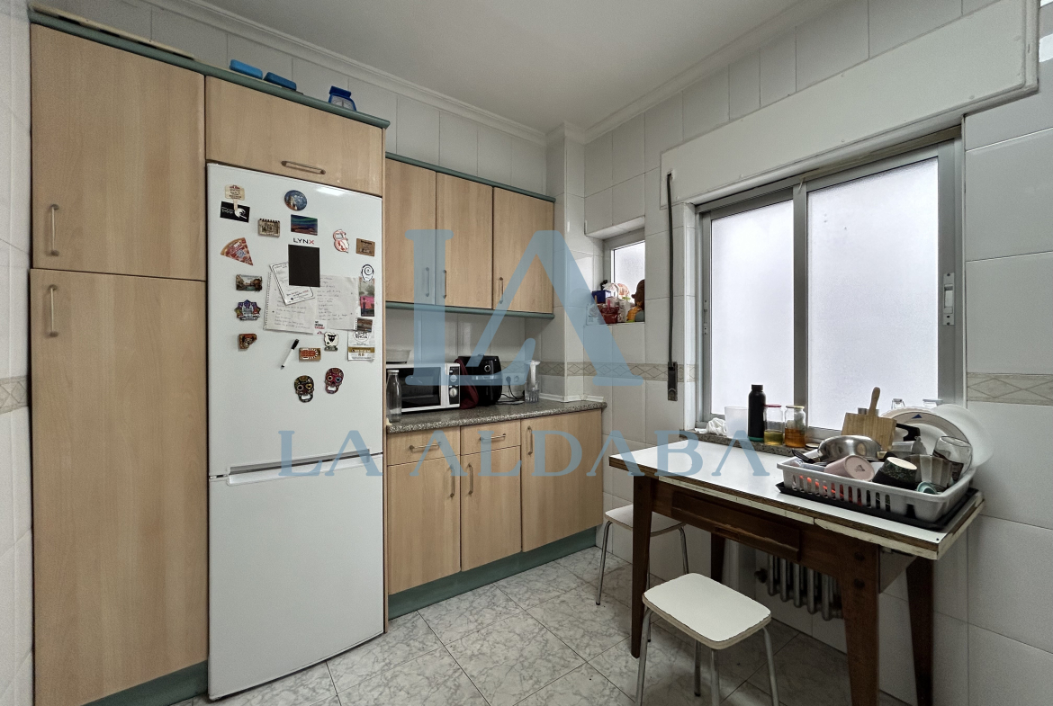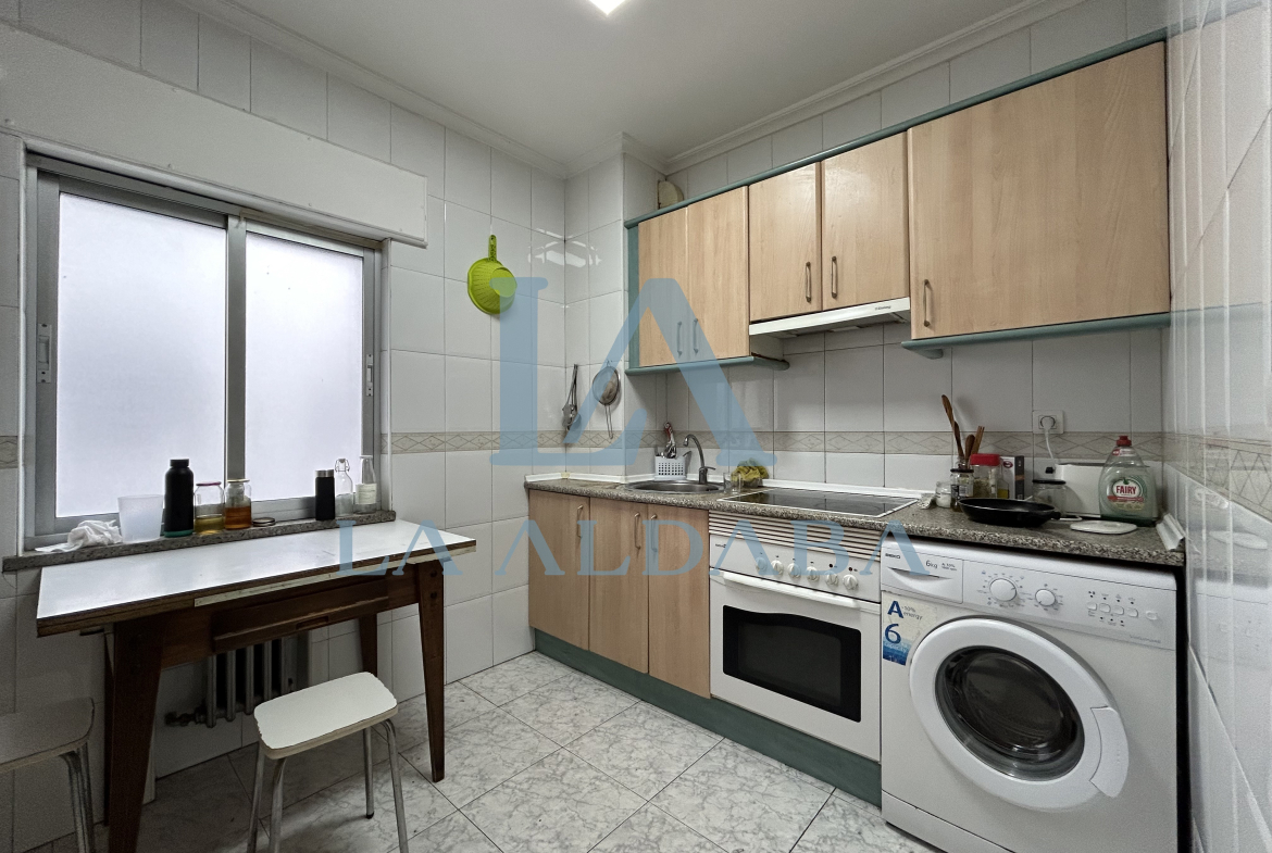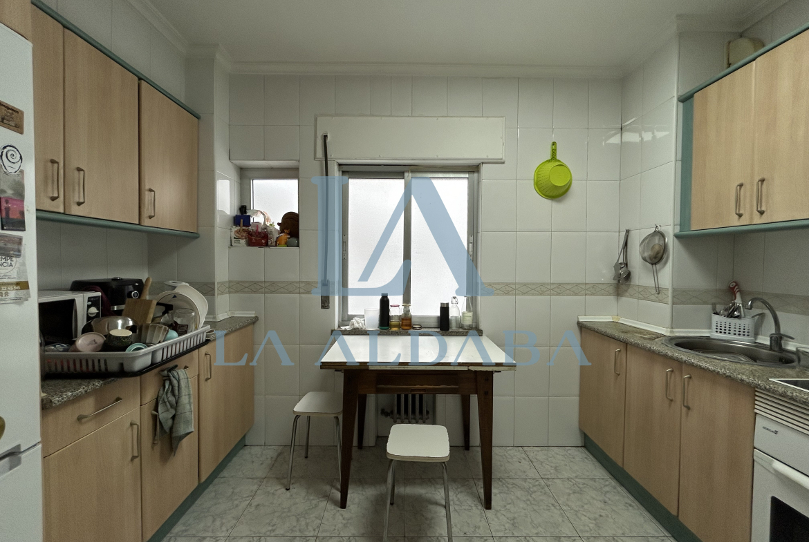 El salón-comedor de 16 m2 es muy luminoso, está orientado al sur y tiene un sofá, dos sillones (en las fotografías se ve un sillón en una de las habitaciones) y una mesa de comedor con 4 sillas. Tiene salida a un gran balcón de 10 m2. La cocina de 10 m2 cuenta con frigorífico, horno, vitrocerámica, microondas, lavadora y una mesa de desayuno. Los dos baños son completos: uno tiene plato de ducha y el otro tiene bañera que va a ser cambiada este verano por otro plato de ducha.