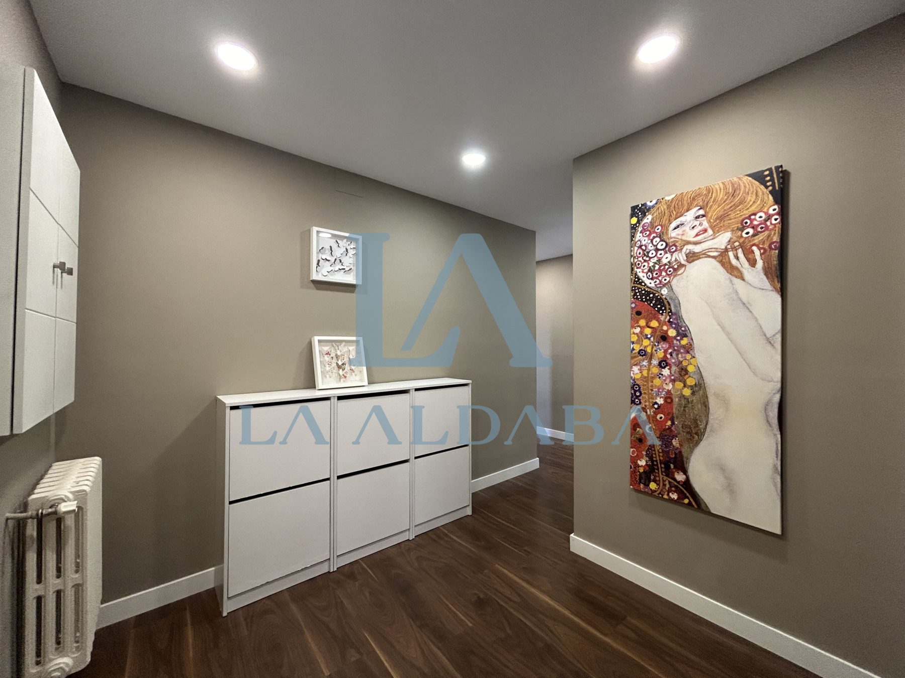 Tiene una amplio recibidor que se entrega con el zapatero de las imágenes. La vivienda tiene calefacción central, puerta blindada, puertas interiores lacadas en blanco y ventanas con rotura de puente térmico. Se entrega con sus correspondientes cortinas.