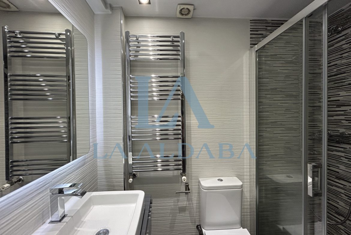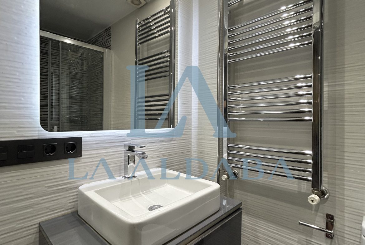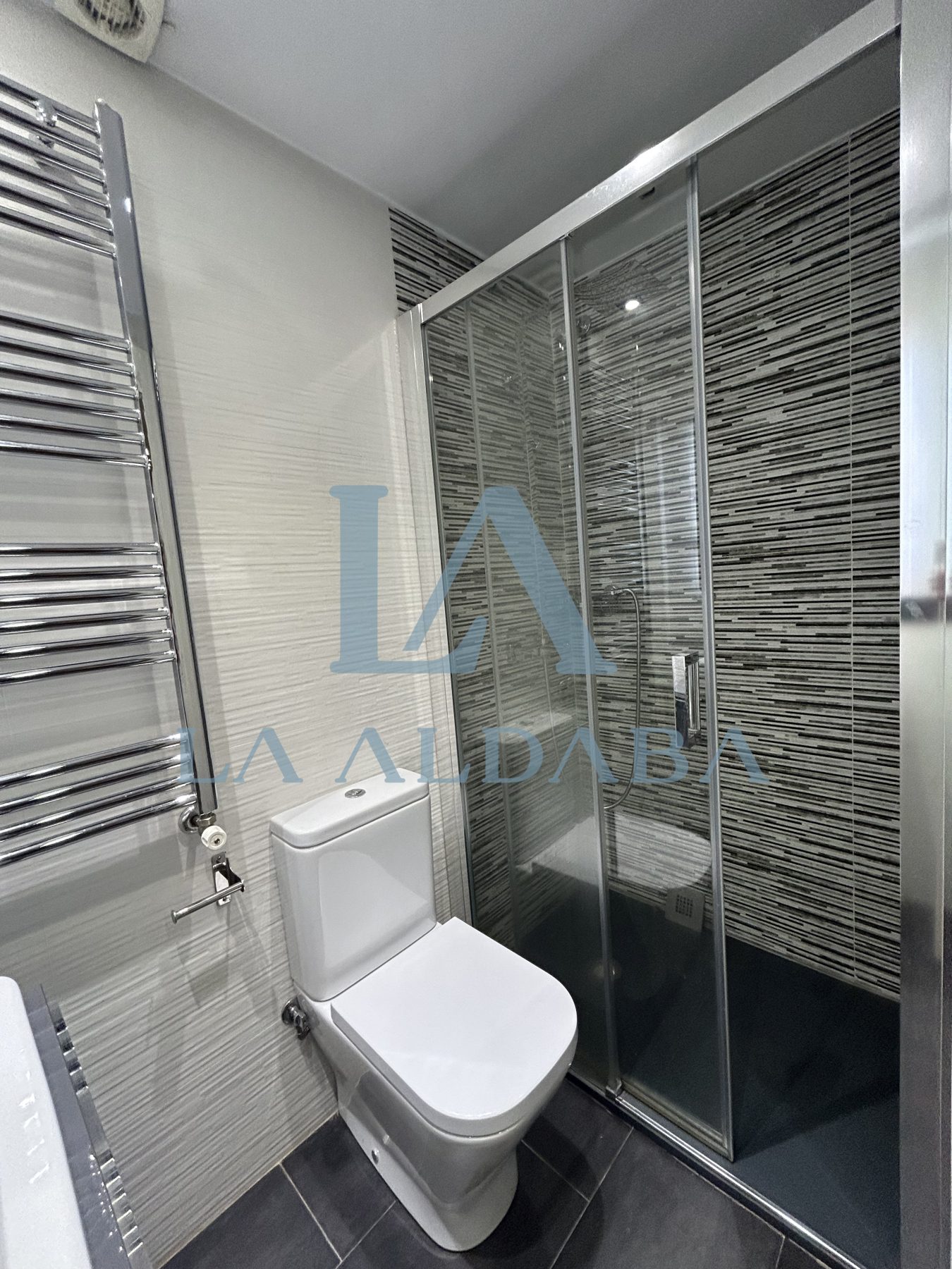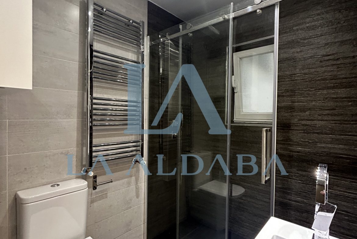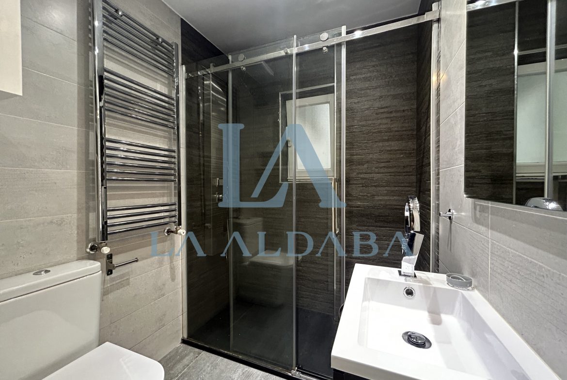 El baño principal está también reformado y cuenta con suelo de gres, otro gran plato de ducha con mampara de cristal, toallero eléctrico y espejo retroiluminado.